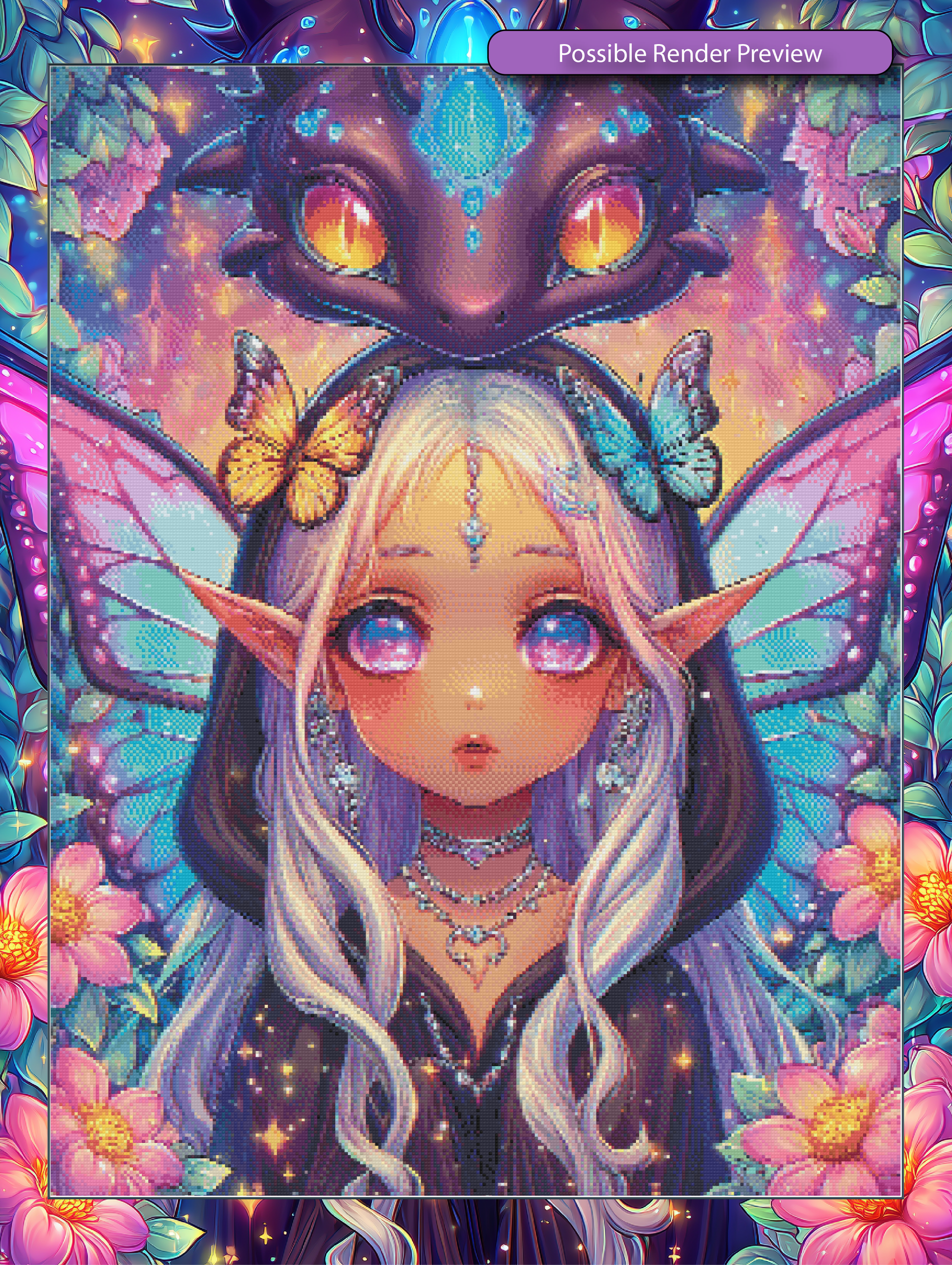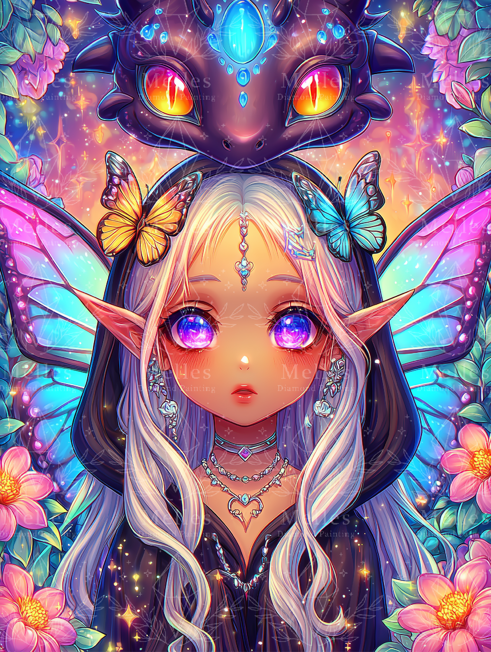 A mystical fae-child blessed with twilight magic, Vespera Skyshard glows with radiant violet eyes and shimmering wings, guarded by her celestial dragon companion. Surrounded by butterflies and starlit blossoms, she embodies the secret beauty of the night. 🌙🦋🐉