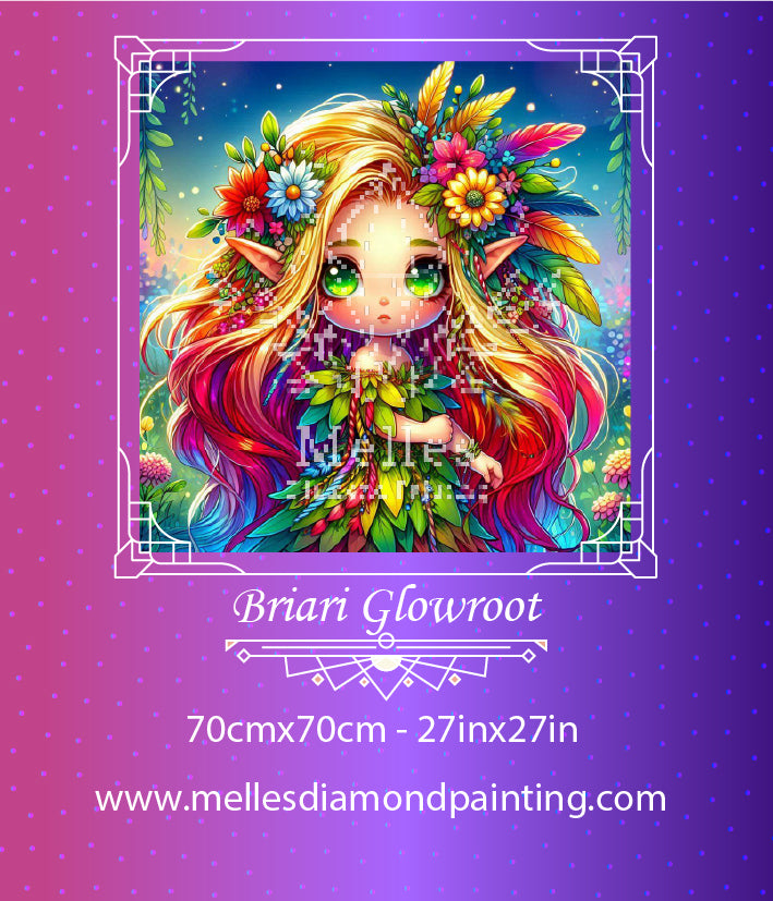 With hair like rainbows and eyes full of morning dew, Briari is a child of blossoms and secrets. Draped in petals and whispers of ancient groves, she dances where light meets leaf.