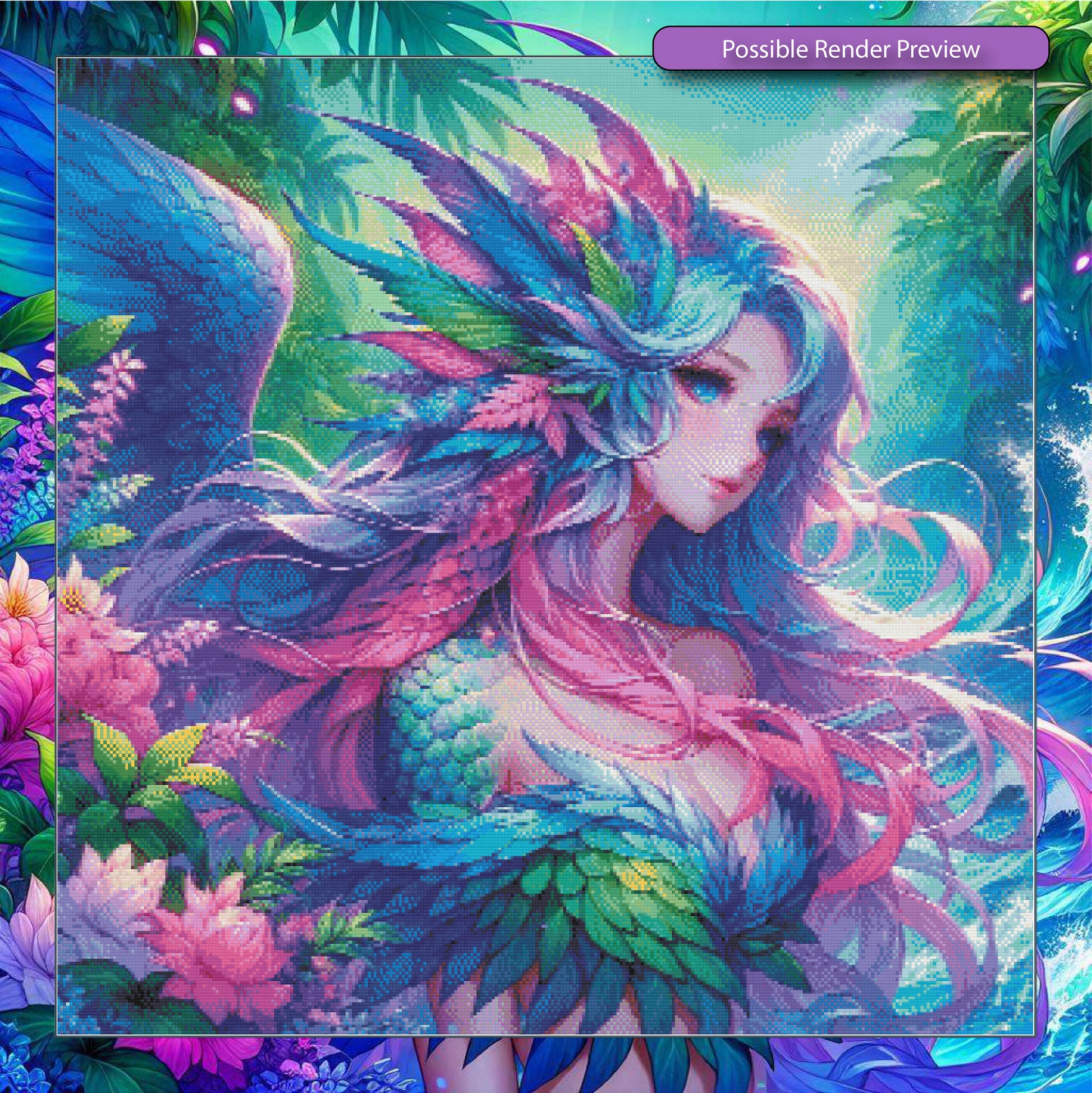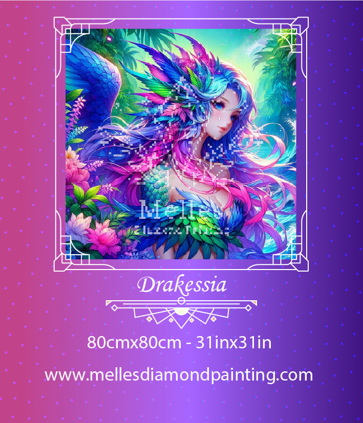 Wrapped in a cascade of iridescent feathers and ocean-born scales, Drakessia is the guardian of wild harmony—where dragons breathe petals and winds hum with forgotten magic. She is the voice of untamed beauty.