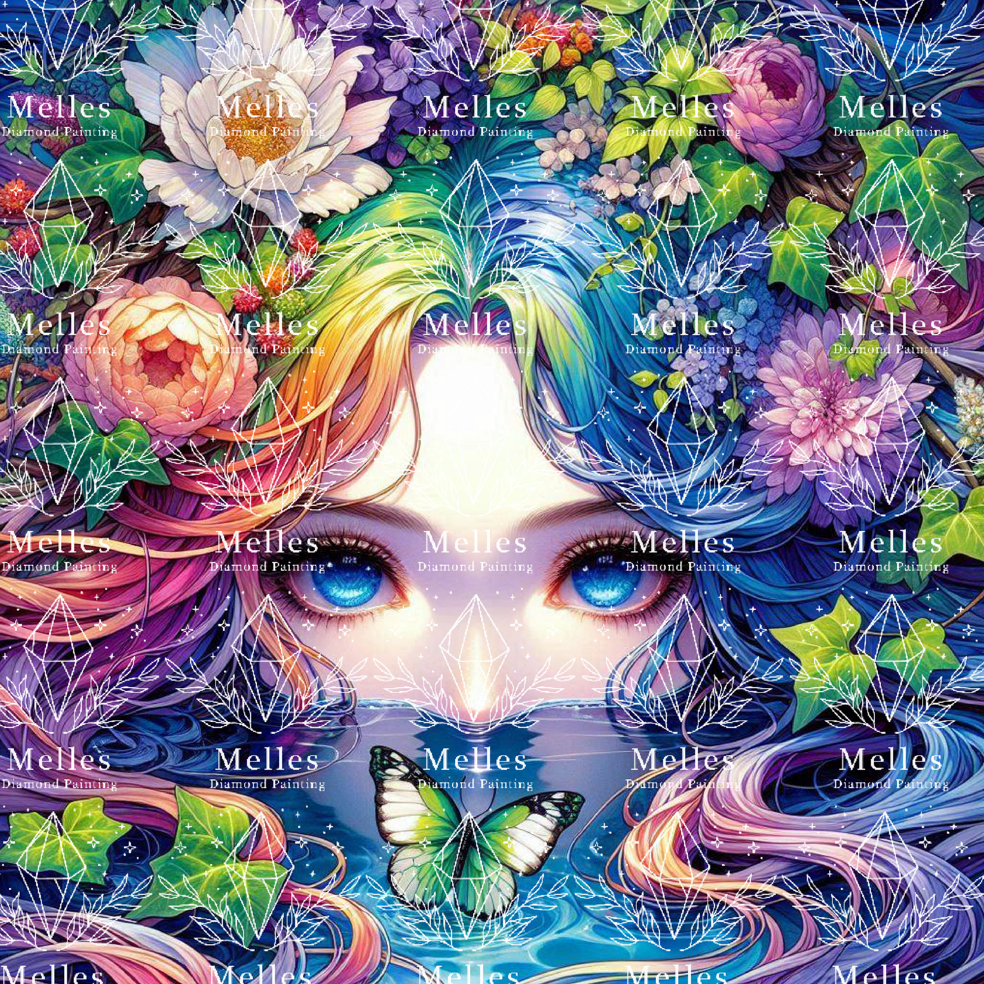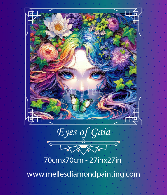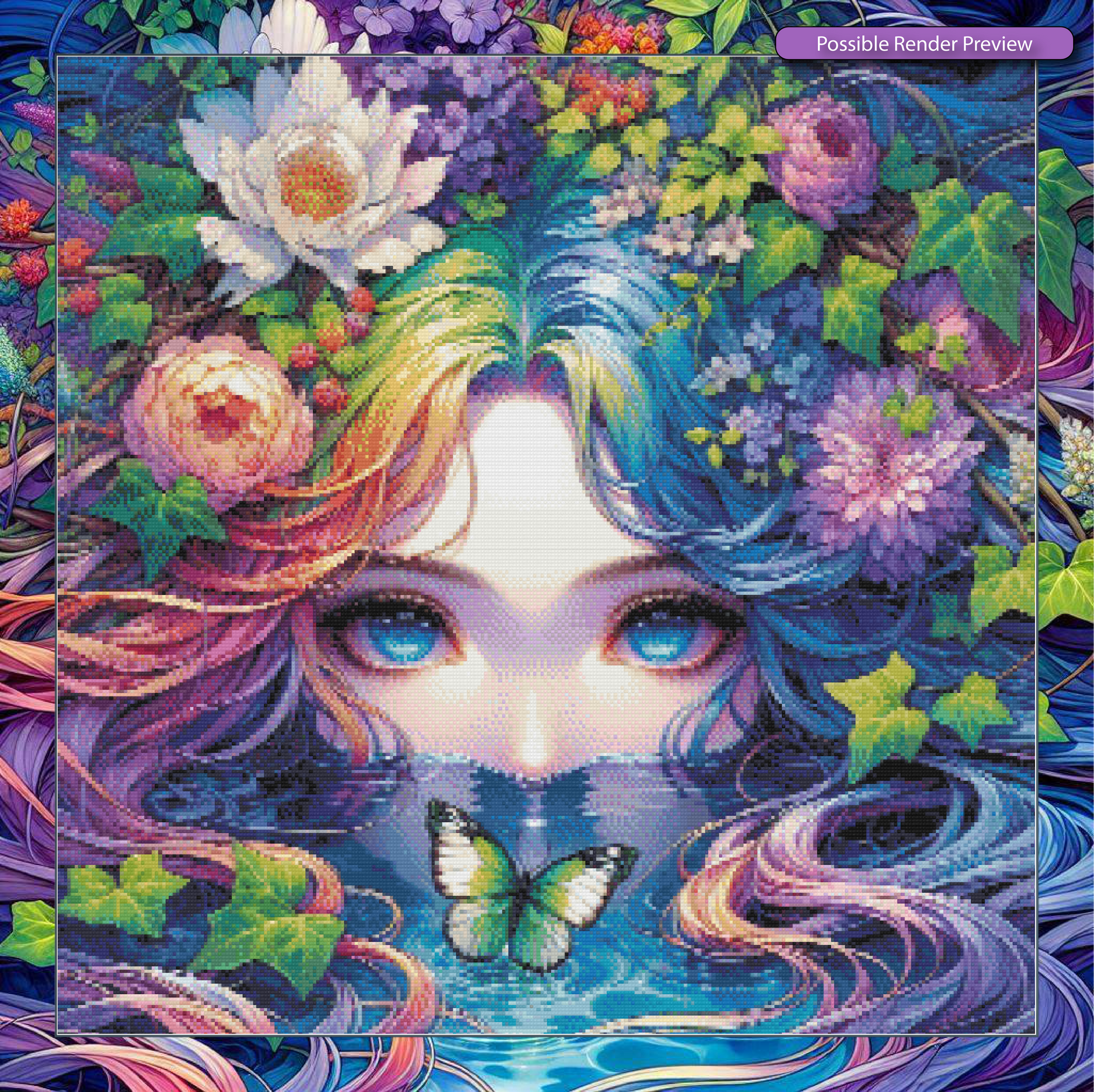 🌍🦋 Eyes of Gaia 🦋🌍 Her gaze holds the wisdom of forests, oceans, and blooming skies. Hair woven from the seasons, crowned with life in full bloom — she is the soul of Earth herself. From tranquil waters rises her spirit, watched over by a single butterfly — the promise of renewal.