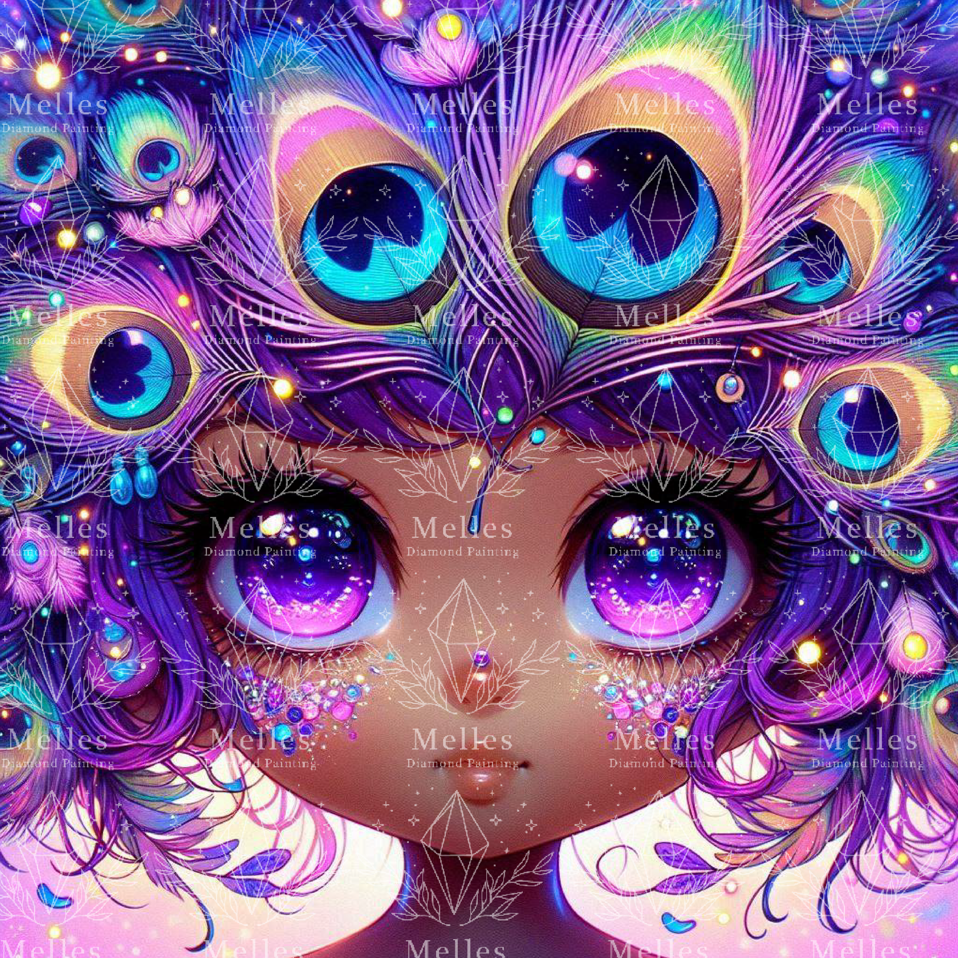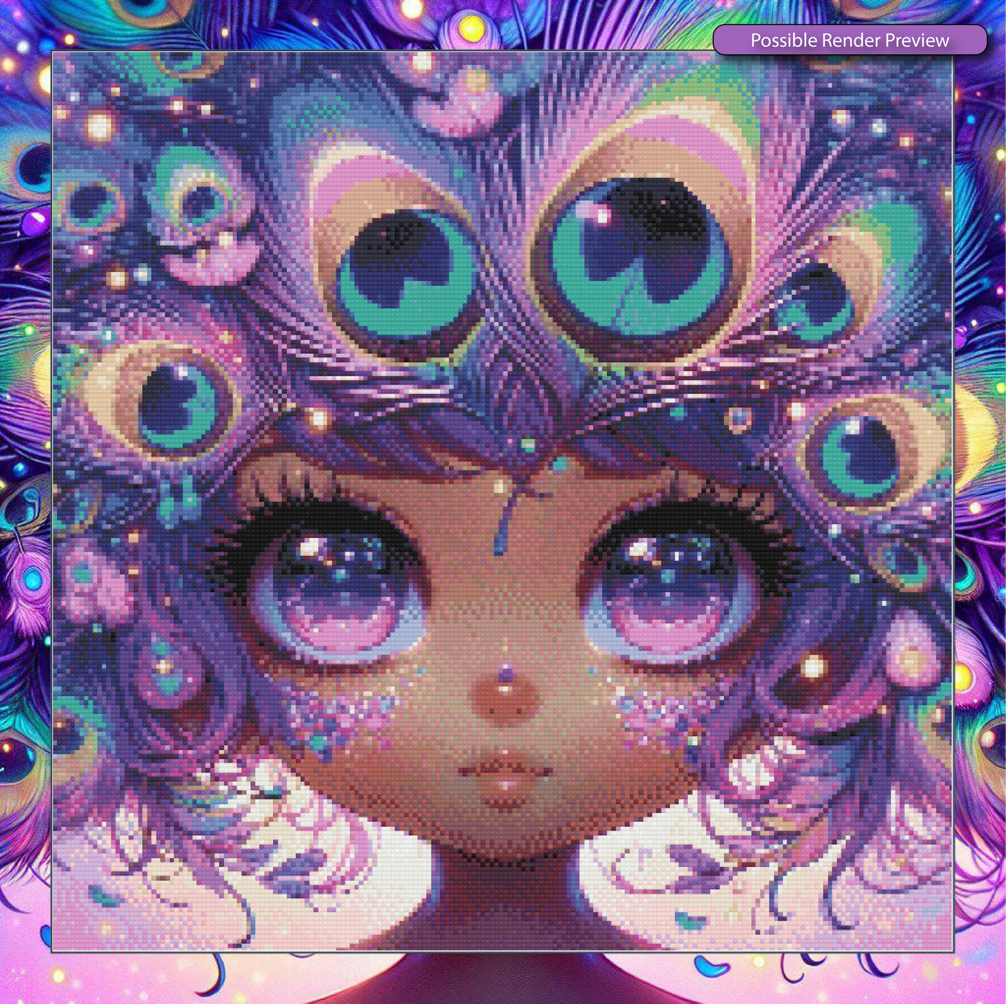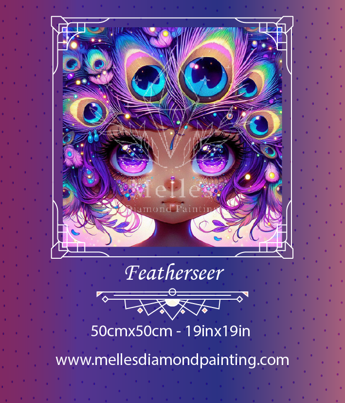 🪶 Featherseer Eyes like galaxies, crowned with whispers of peacock prophecy—she sees beyond the shimmer, into dreams not yet born. A tiny oracle cloaked in color and quiet magic.