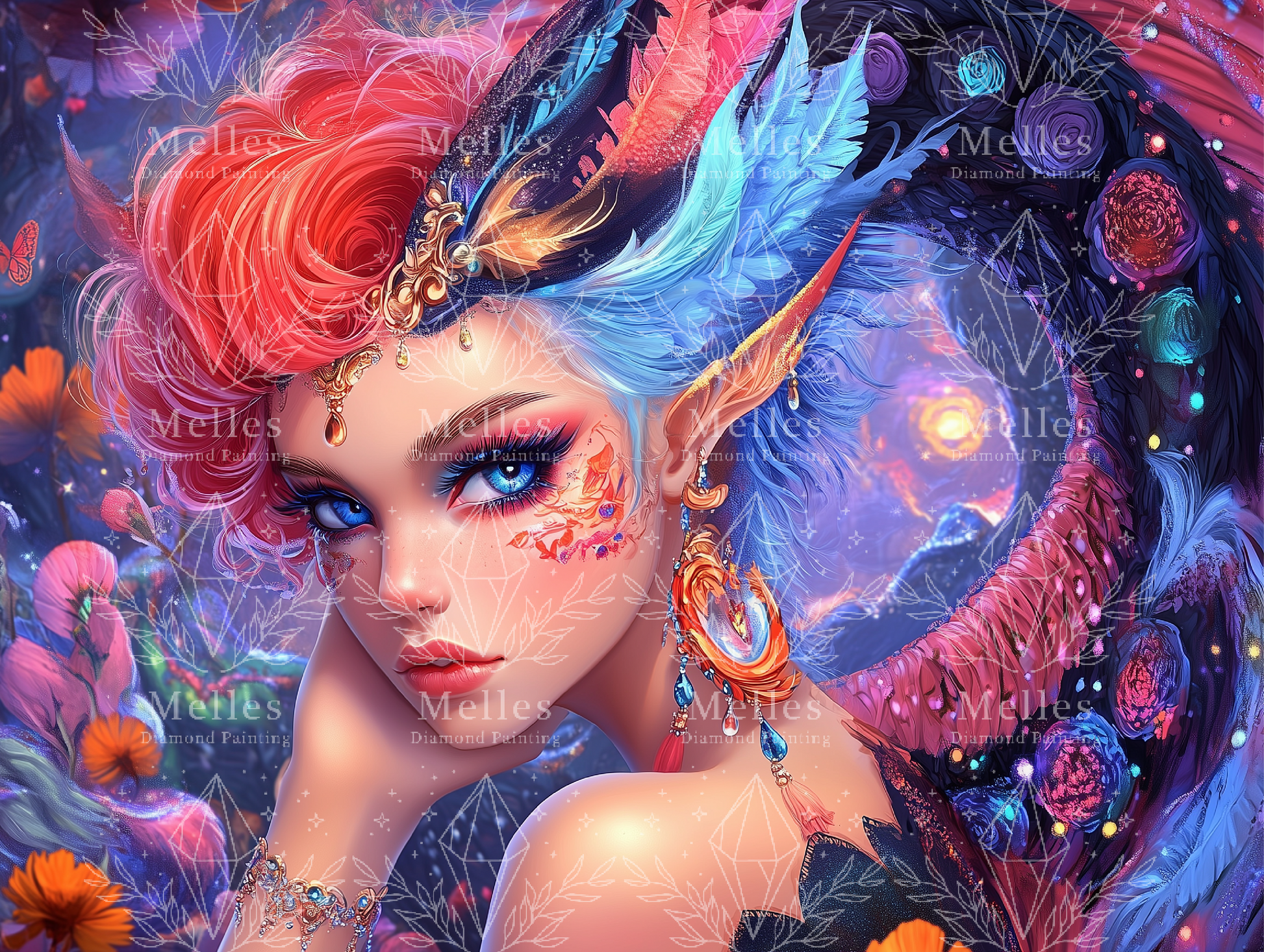 With petals spun from galaxies and eyes that hold the birth of stars, she is the eternal bloom of the universe. Each glance is a whisper of infinite beauty and celestial wonder.