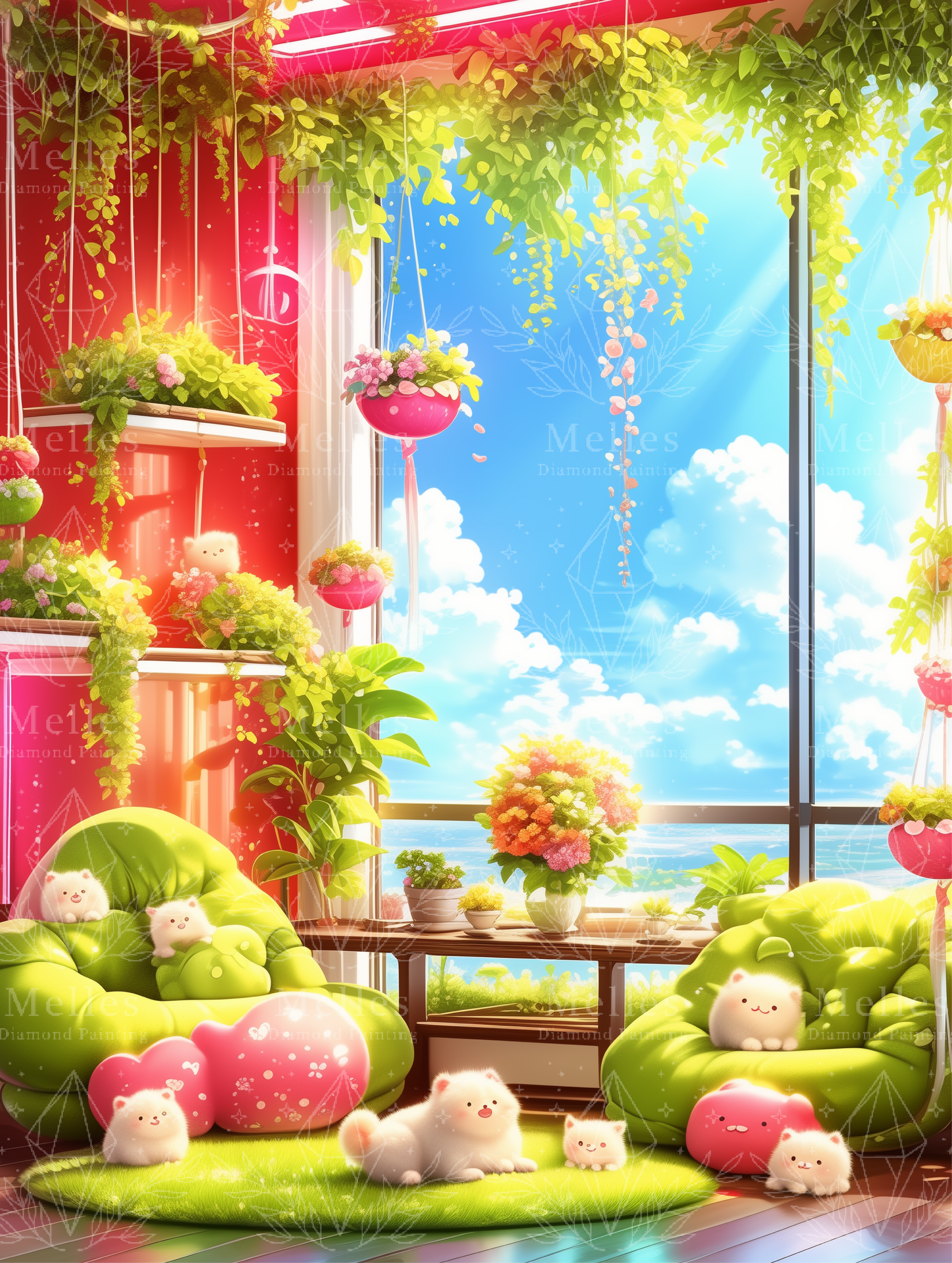 Bathed in golden sunlight and wrapped in hanging greenery, this little corner is where worries melt away. Plush chairs cradle quiet moments, plants sway gently in the breeze, and tiny fluffy companions remind us that joy lives in the simplest pauses. A space made for softness, warmth, and slow smiles. 🌿🌤️💖