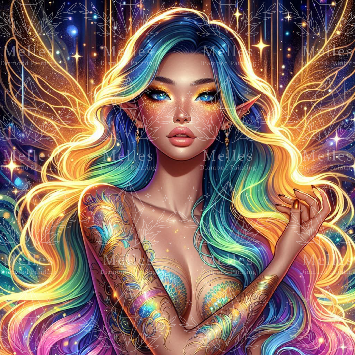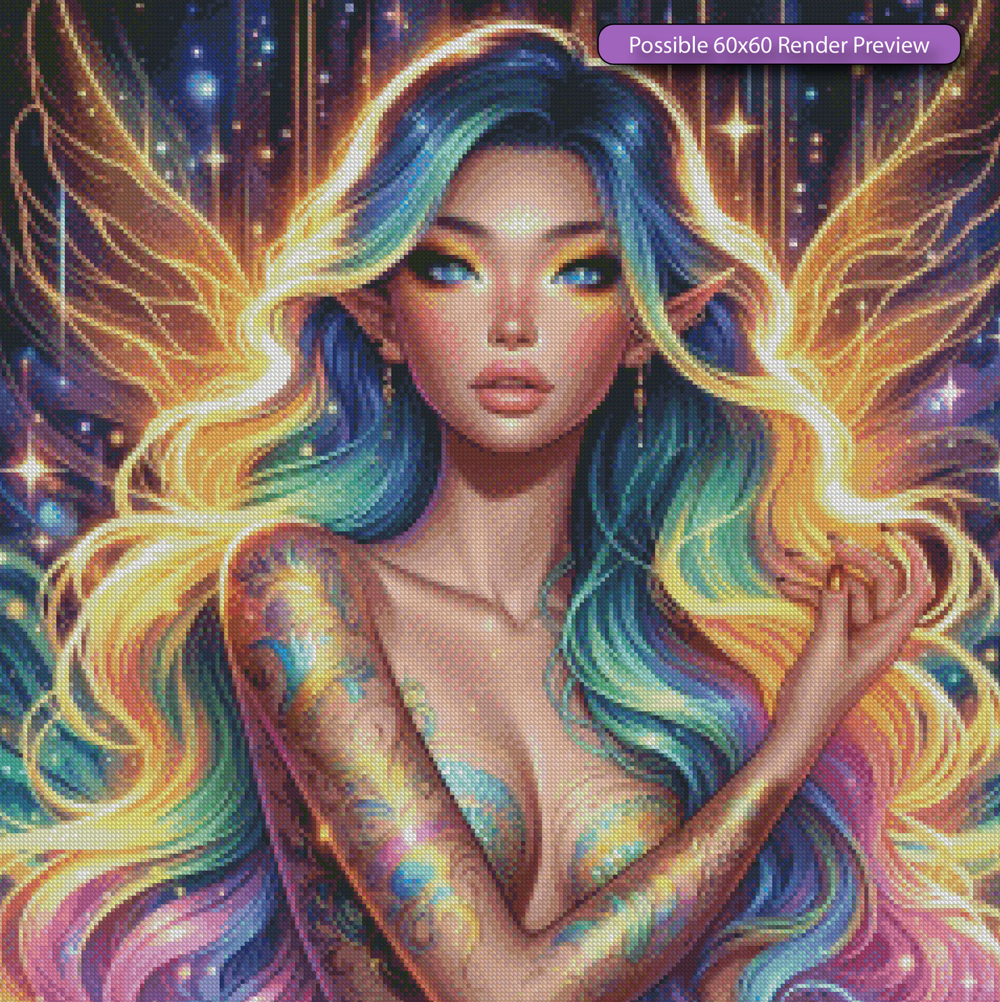 "Radiating with celestial splendor, Inoue embodies the spirit of the stars. Her hair flows in a cascade of vibrant hues, mirroring the magical tapestry of the cosmos. With eyes that shimmer like galaxies and tattoos that tell the stories of ancient realms, she stands as a beacon of ethereal beauty and timeless grace. Embrace the enchantment, and let your imagination soar with Inoue, the guardian of dreams and the muse of the night."