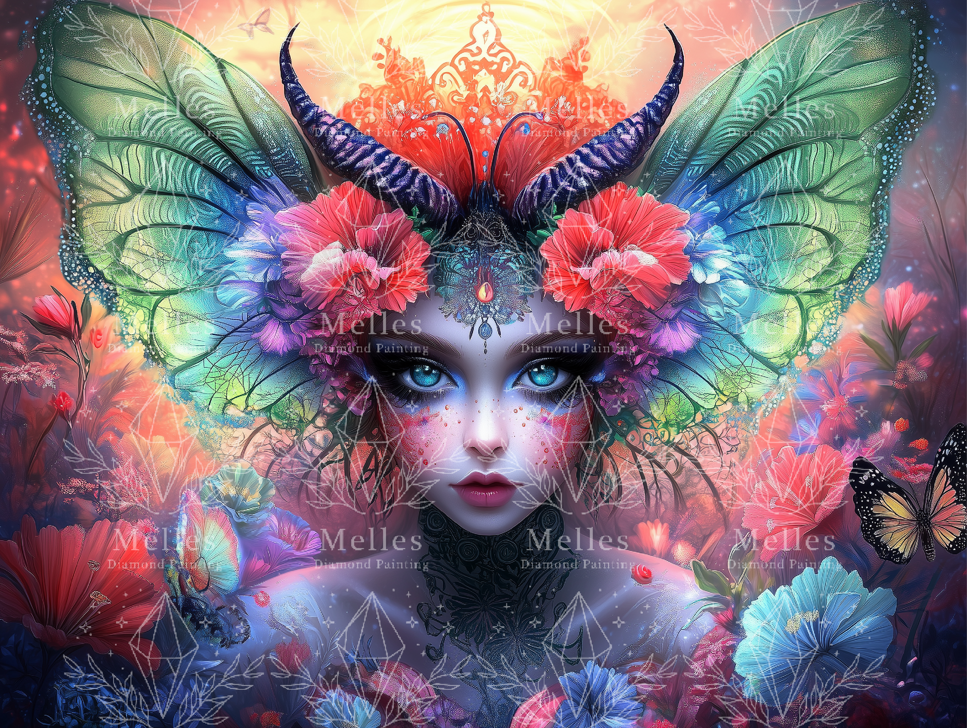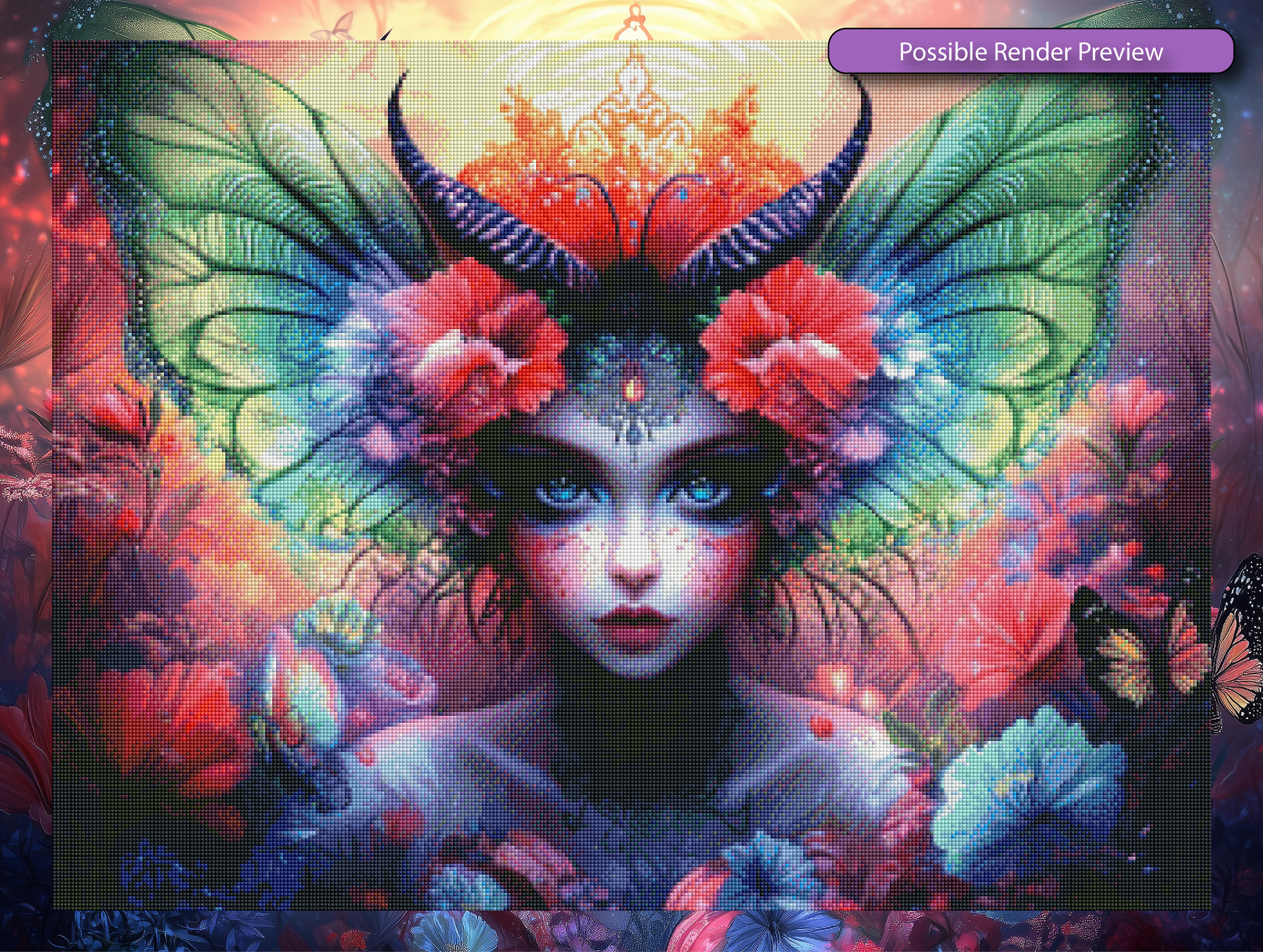With wings kissed by rainbows and a crown of blooming petals, she reigns over the realms where mist meets dawn. Her presence is a spell woven from whispers, colors, and dreams.