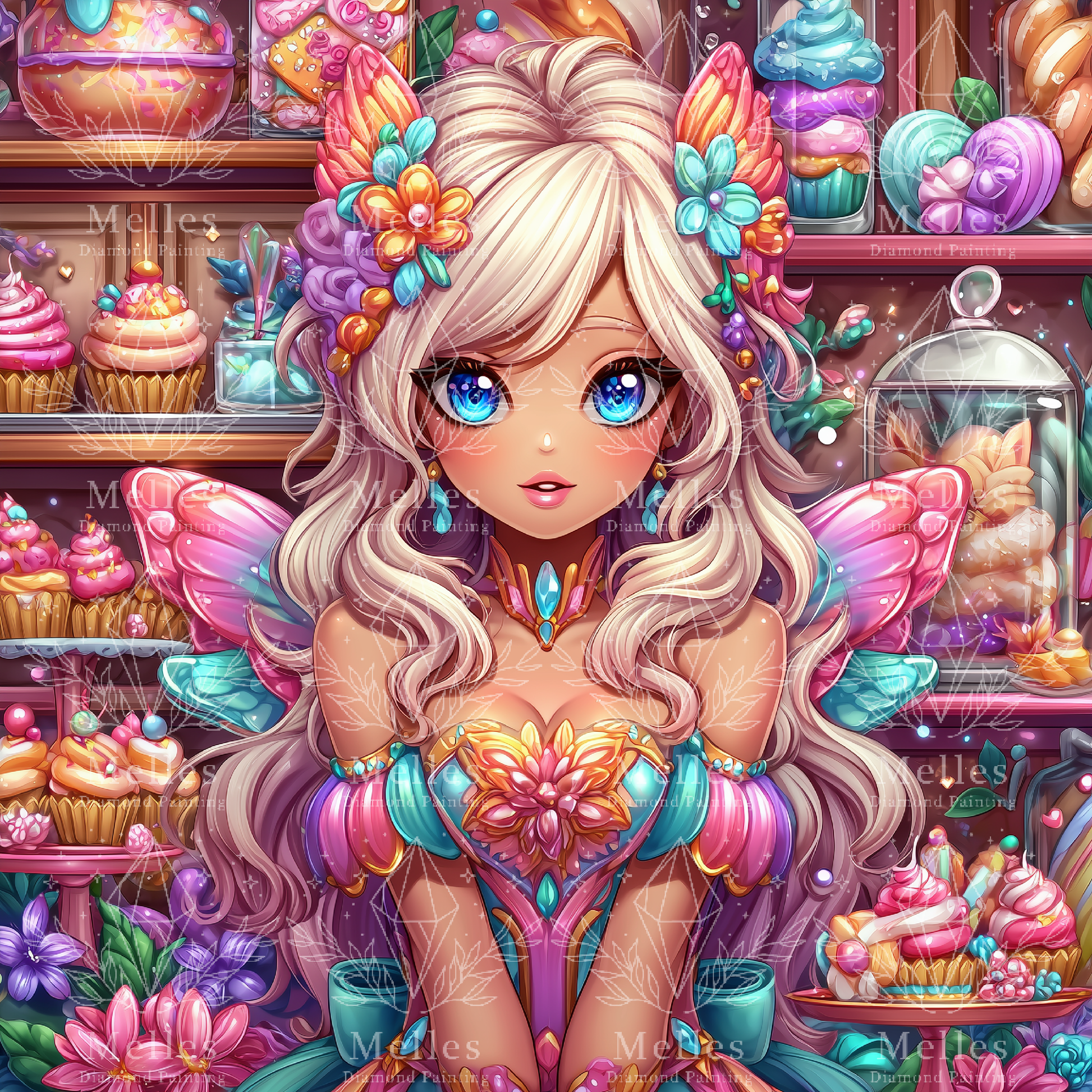 Laura is the fairy of joyful treats — where cupcakes sparkle, candies glow, and happiness is baked into every moment. Her wings shimmer with pastel dreams, and her bright blue eyes carry the magic of childhood wonder and sweet indulgence.