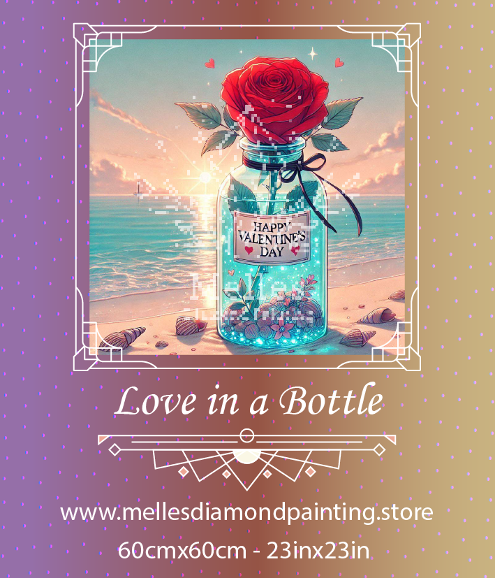 Capture the essence of romance with Love in a Bottle, a heartwarming artwork perfect for Valentine's Day or any celebration of love. This enchanting piece features a single red rose 🌹 preserved in a sparkling glass jar, adorned with a bow and set against a serene seaside backdrop.