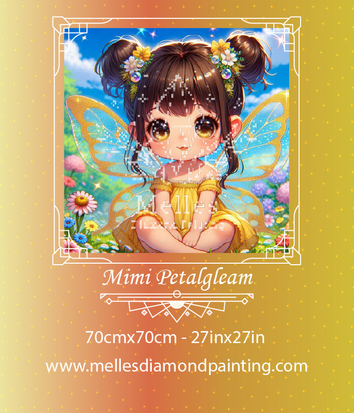 With wings kissed by golden morning light and eyes like honey-dipped stars, Mimi Petalgleam brings laughter to every blossom she visits. Dressed in sunshine and crowned with sparkling dewdrops, she hums lullabies to butterflies and twirls among tulips with pure joy. Wherever she sits, flowers bloom brighter, and hearts feel lighter. 🌸🌞🦋