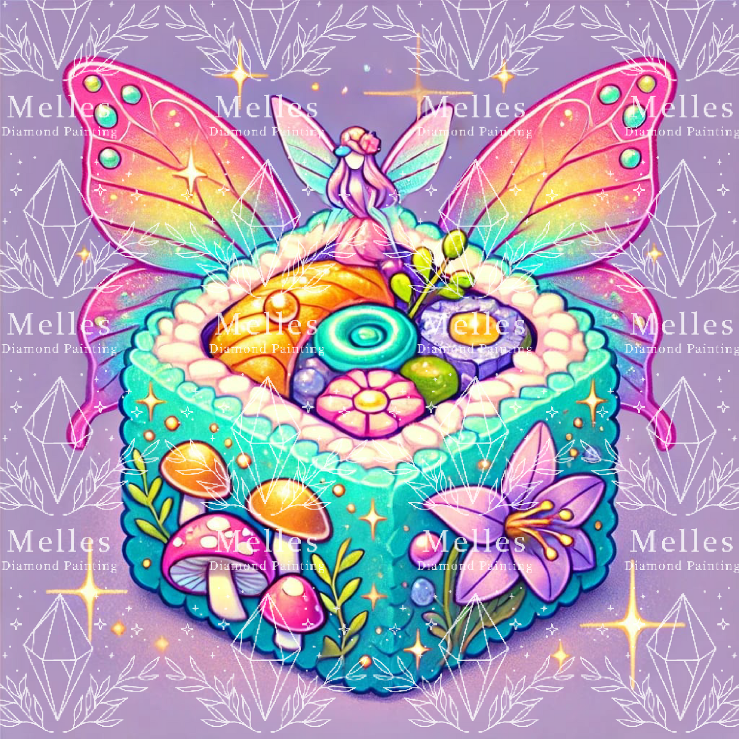 Immerse yourself in a world of fairy-tale charm with the Mini Fairy Sushi Kit from Melles Diamond Painting! This 30cm x 30cm (11in x 11in) diamond painting set features four ethereal designs, blending fantasy and nature in a dazzling sushi-inspired dreamland. Adorned with delicate fairy wings, glowing mushrooms, and sparkling gems, each piece feels like a treasure from an enchanted forest.