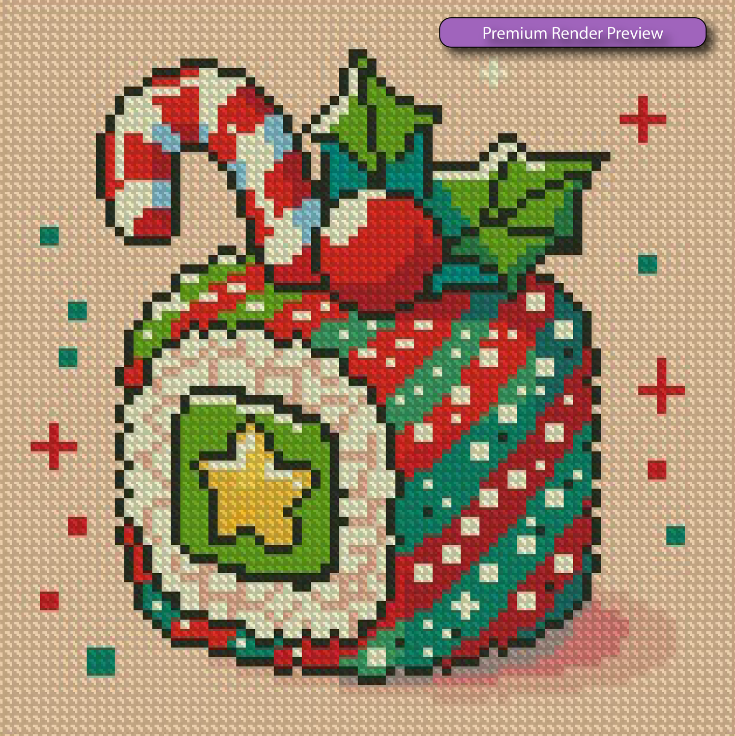 Each piece is decorated with intricate holiday themes, blending the classic sushi aesthetic with seasonal elements. Imagine sushi rolls adorned with candy canes, holly leaves, and bright red ornaments, all designed in vibrant red, green, and white colors.