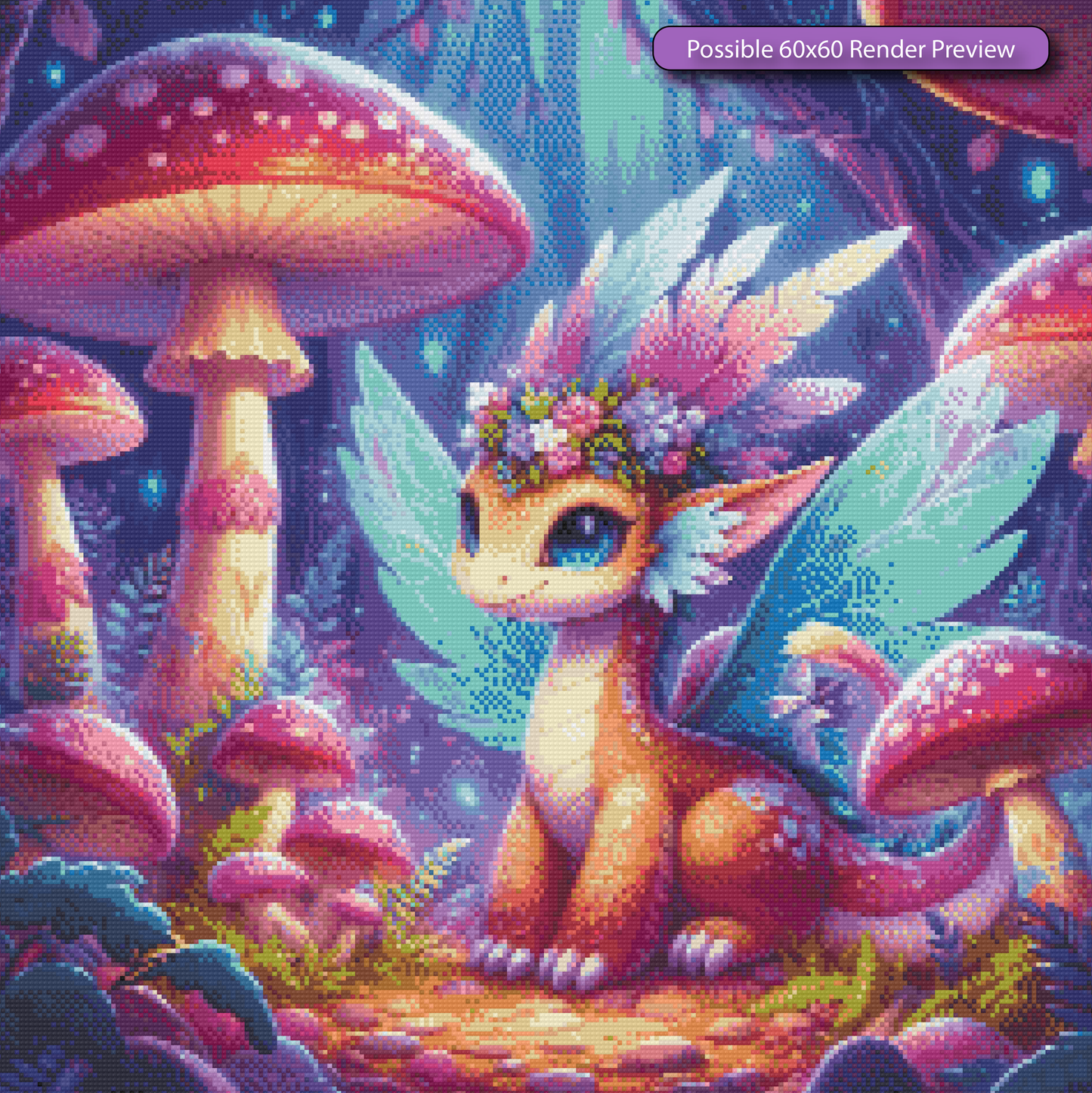 Immerse yourself in the magical realm of the Mushroom Guardian. This diamond painting kit transports you to an ethereal forest where towering mushrooms stand like ancient sentinels, their vibrant hues inviting you deeper into the mystical landscape.