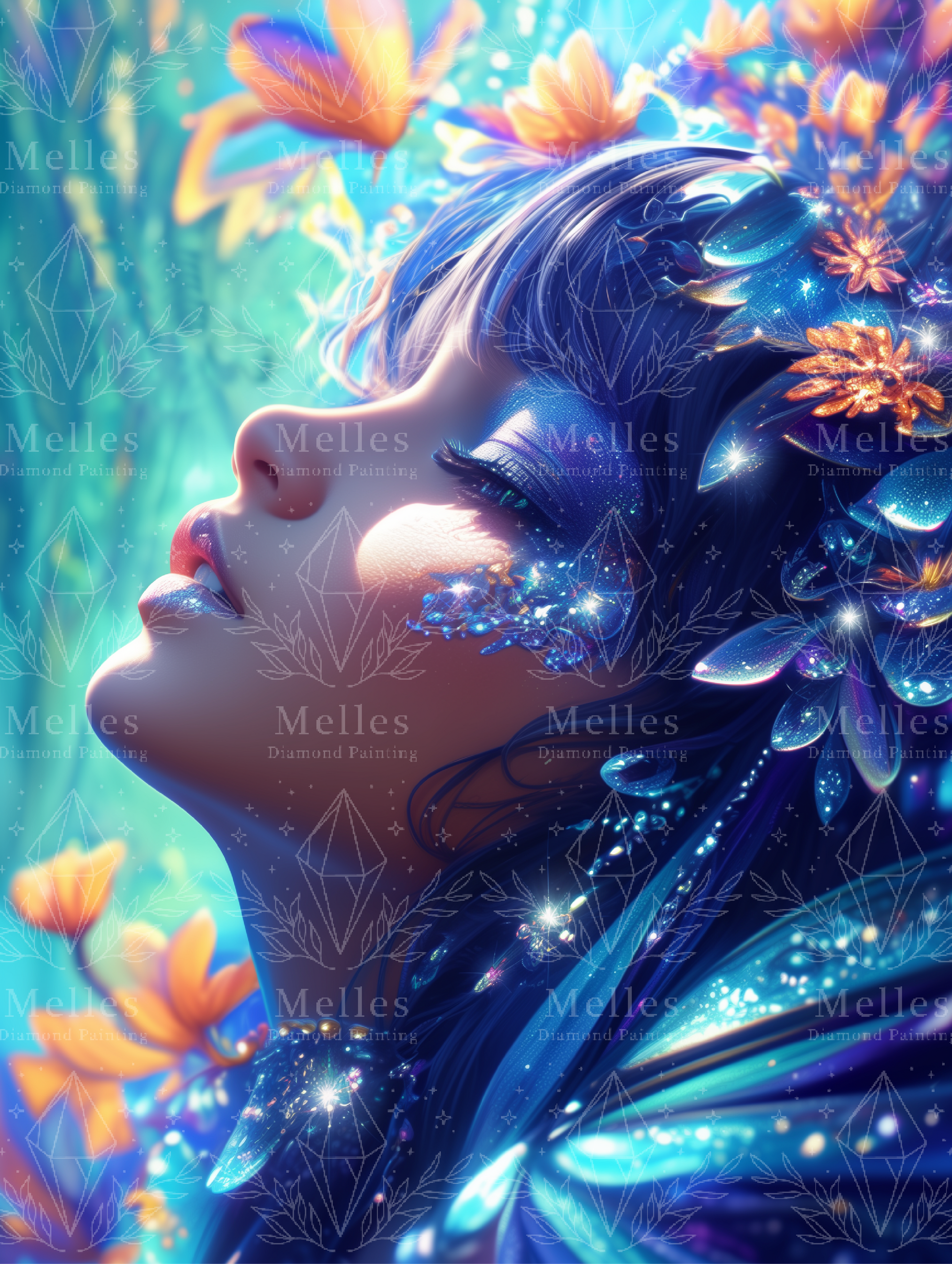 Bathed in the glow of bioluminescent dreams, Noctilune drifts between night and bloom โ a spirit of starlight and whispering petals. Her skin glimmers like moonlit water, her tears forming tiny constellations that shimmer across her cheeks.