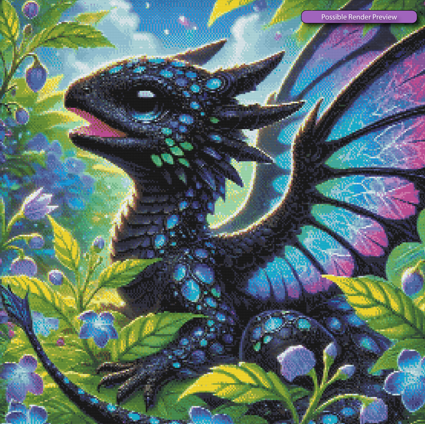 Behold the majestic glow of Noctis Neon Scale, a stunning baby dragon blooming with iridescent hues of electric blue, violet, and emerald green! 🖤✨ Nestled within a magical forest, this glowing guardian is a true masterpiece waiting to be brought to life with shimmering diamonds! 💎🌿