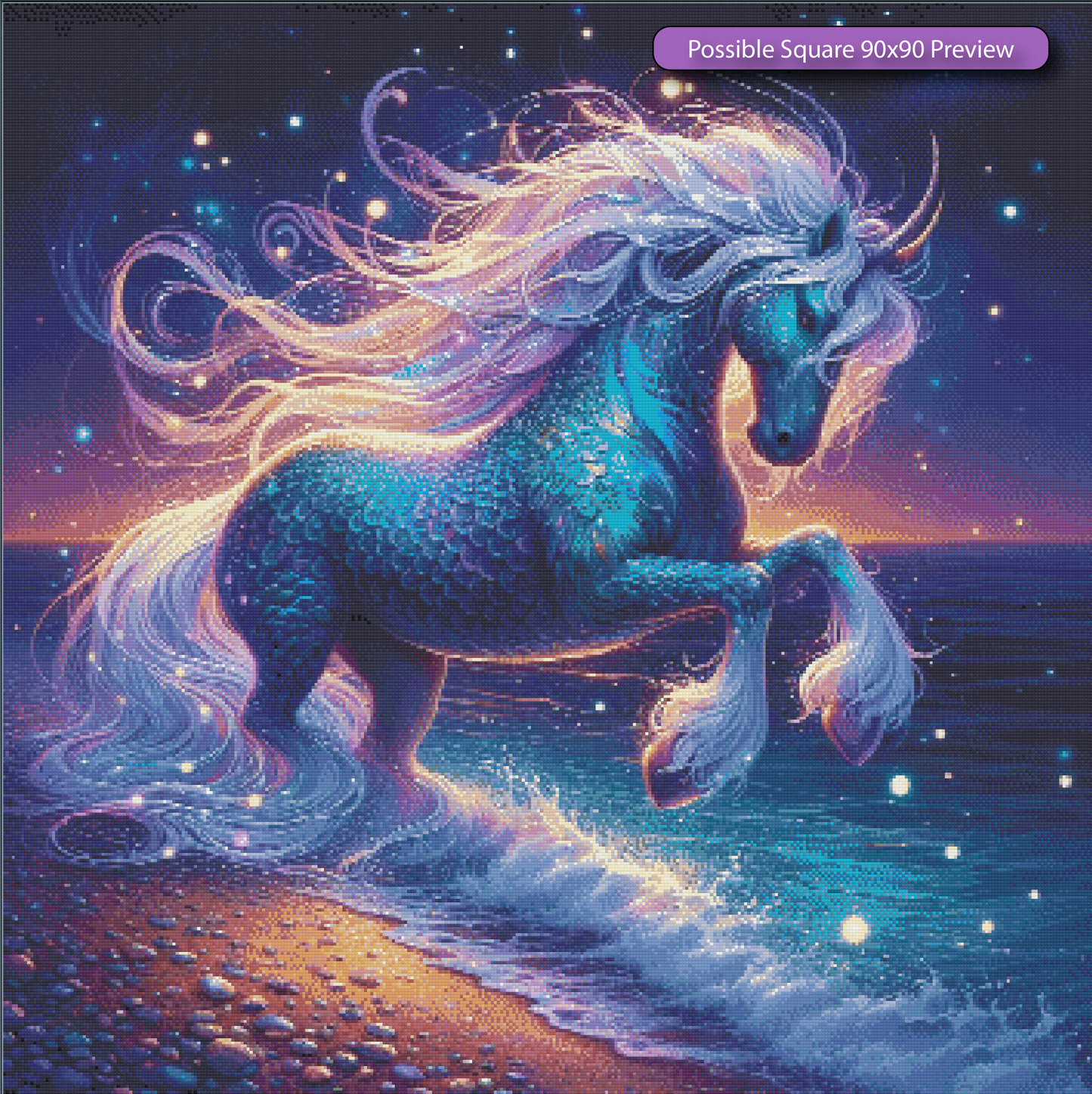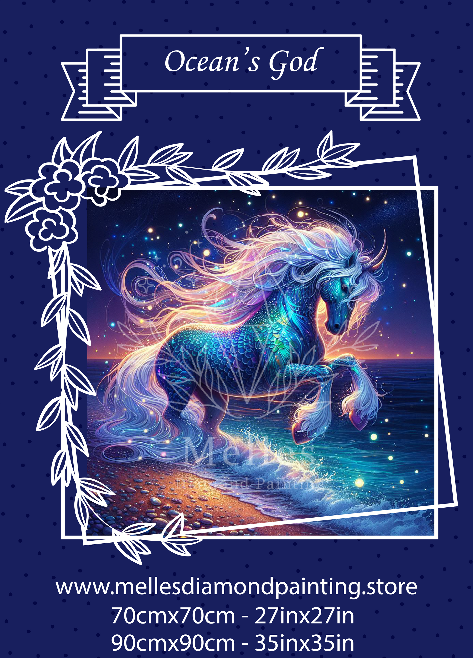 In the vast and mysterious depths of the ocean, there exists a divine entity known as Ocean’s God. This majestic creature is no ordinary being; it is a horse with the shimmering skin of mermaid scales, reflecting the myriad colors of the sea. Its mane, as white as the foam on a wave’s crest, flows like the tides, guided by the moon’s pull. Ocean’s God is the embodiment of the sea’s might and grace, the physical form of the Ocean God, whose presence commands the respect of all marine life. It gallops across the ocean floor, stirring the sands of time, and when it breaches the surface, it is said that the sea calms and the horizon bows in reverence to its splendor.