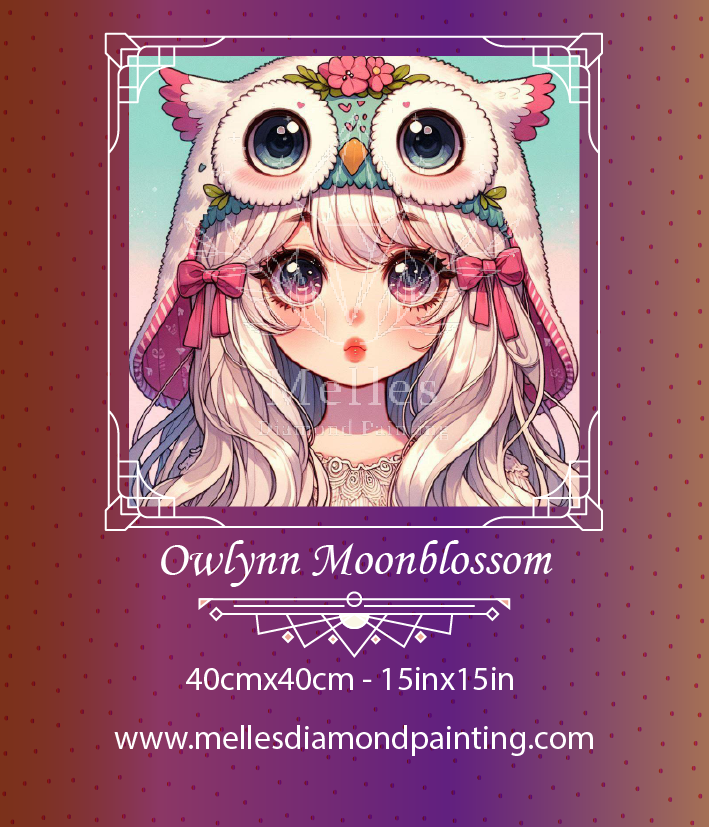 🦉🌸🌙 Owlynn Moonblossom 🌙🌸🦉 Wrapped in the softness of twilight and moonlight whispers, Owlynn is a delicate dreamer of the forest night. With starlit eyes and silvery hair flowing like winter mist, her owl hat—adorned in blossoms and wisdom—guides her through the quiet of enchanted woods. She listens more than she speaks, and when she does, her words bloom like petals in the dark. ✨🕊️🎀