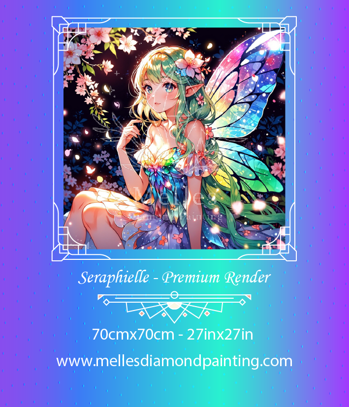 Bathed in moonlight and wrapped in petals, Seraphielle is the guardian of twilight gardens — where dreams take root and bloom. Her wings shimmer like stained glass kissed by dawn, and every movement trails a rainbow whisper through the night air. Gentle yet radiant, she carries the warmth of spring in every flutter. 🌙💐