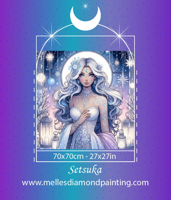 A vision of serenity and frost, Setsuka reigns beneath the silent stars — her presence as delicate as snowfall and as powerful as the winter moon. Her silver gaze carries the calm of frozen lakes and the shimmer of untouched snow. 🌌💎