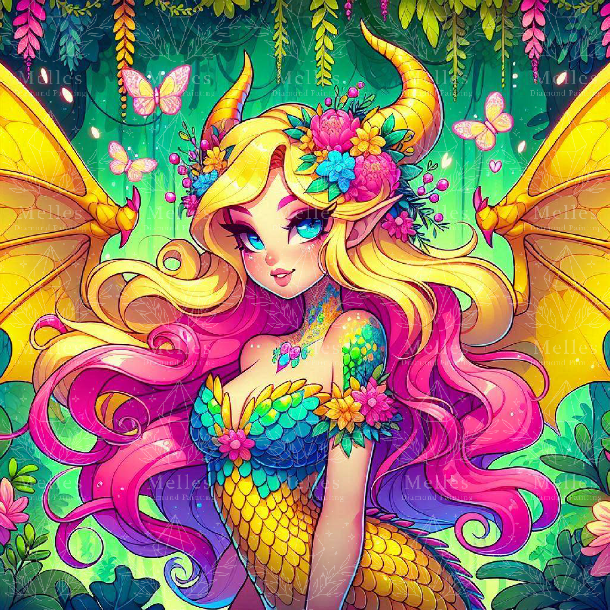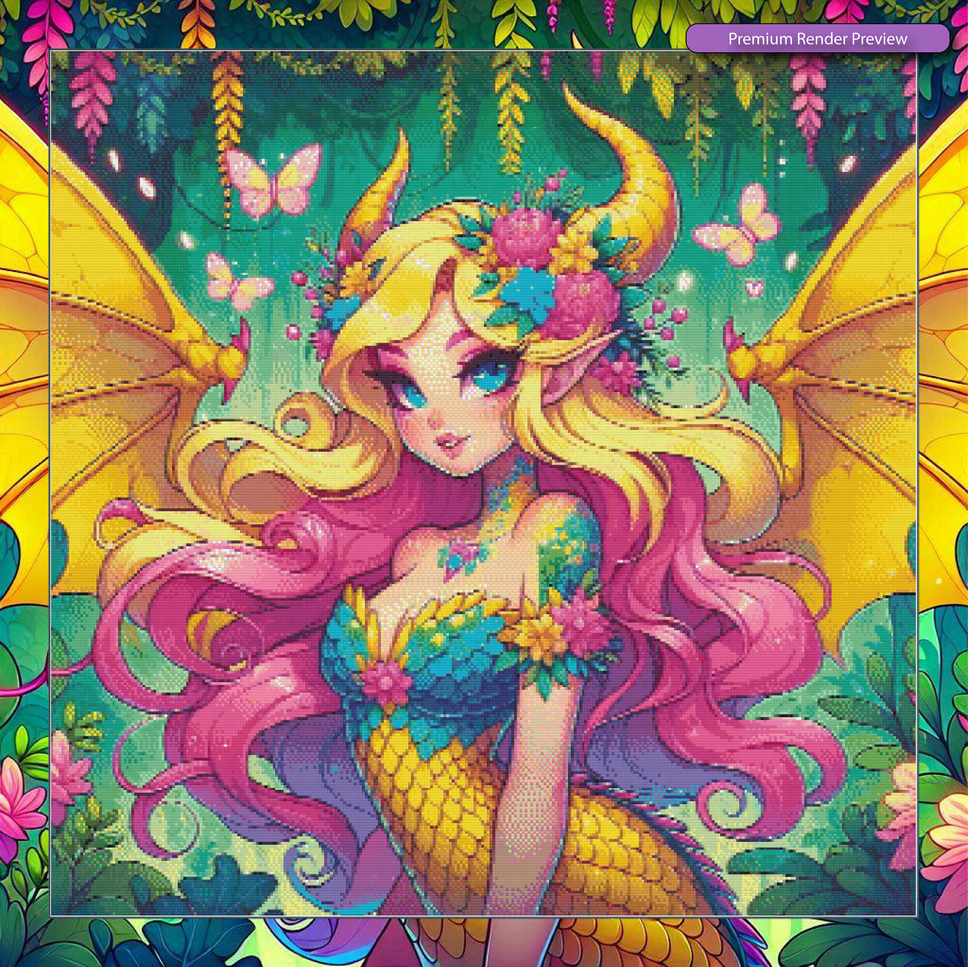 Solstania is the radiant guardian of balance, where sunlight kisses shadow and magic blooms in harmony. With golden horns crowned in blossoms and wings glowing like living sunlight, she embodies joy, courage, and the wild beauty of transformation. Her presence feels like a warm solstice breeze—powerful, playful, and deeply alive.