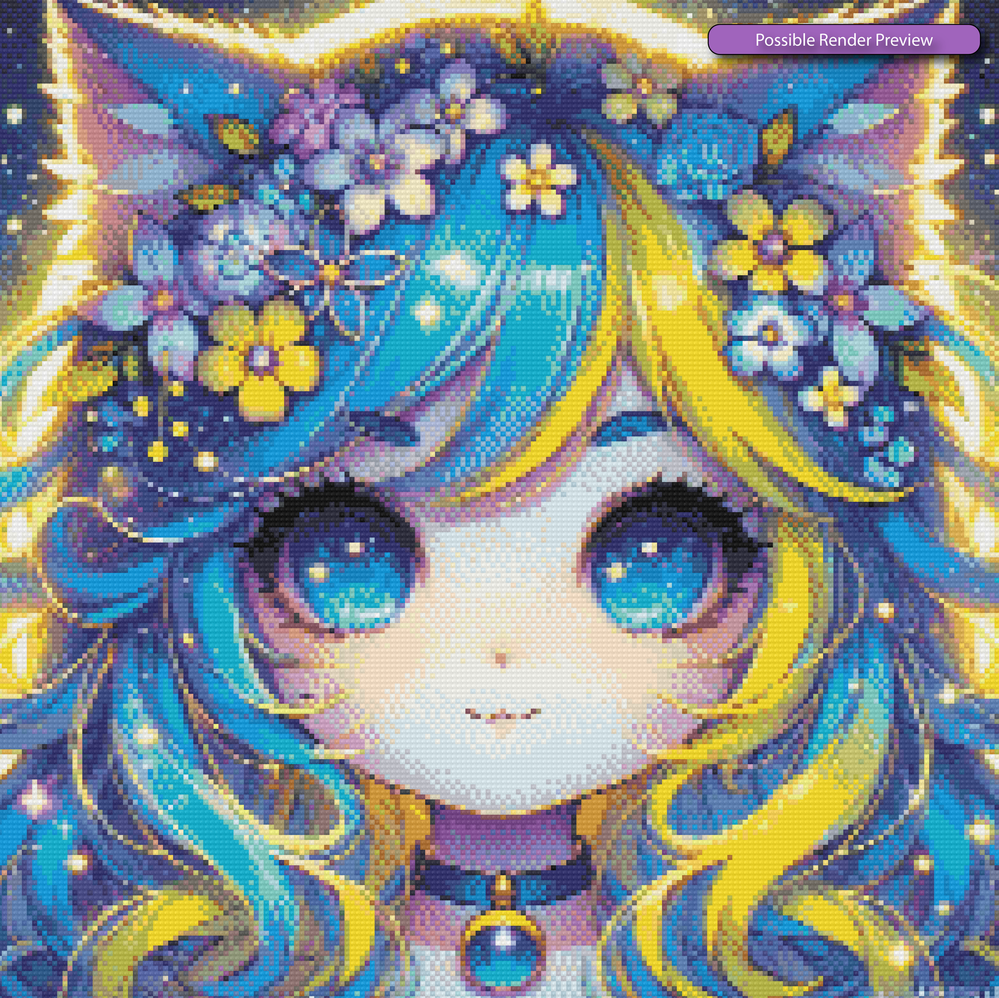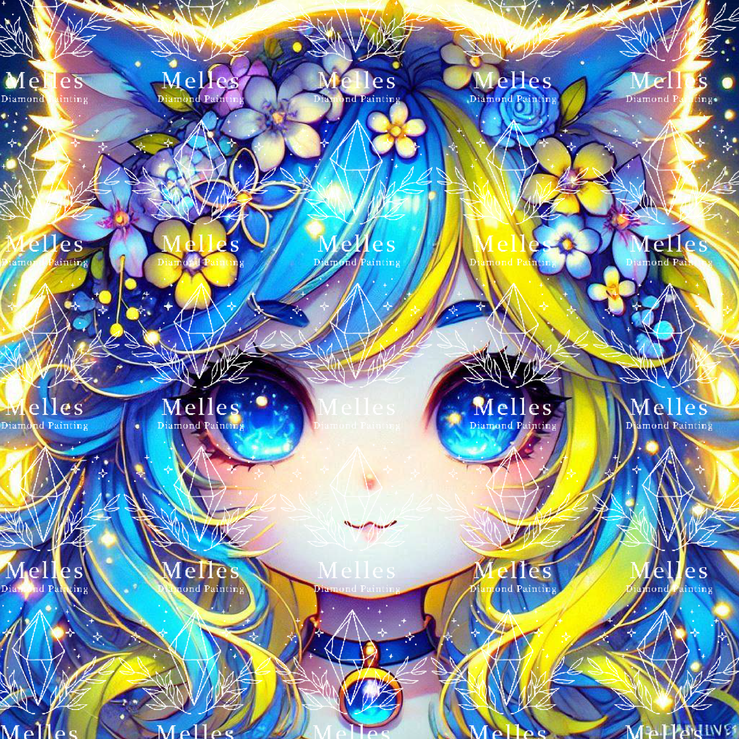 This adorable feline spirit is bursting with the colors of spring! 💛💙 With dazzling sapphire eyes, golden floral locks, and an aura of magic, this little Meowish brings joy, warmth, and renewal wherever it goes. ✨🌿