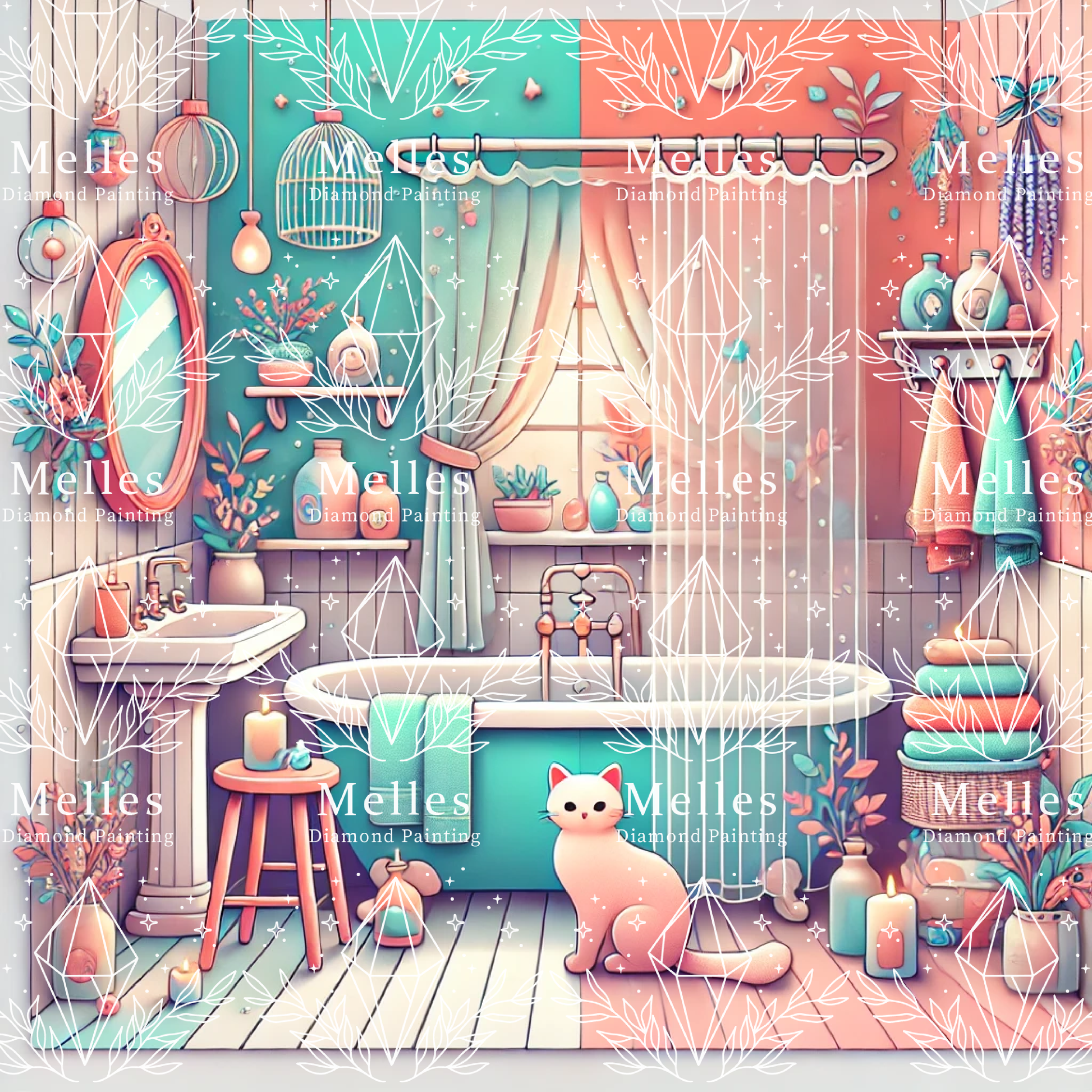 This delightful diamond painting design captures the essence of serene self-care and the simple joys of home. 🌿🐾 Perfect for adding warmth and elegance to your collection.