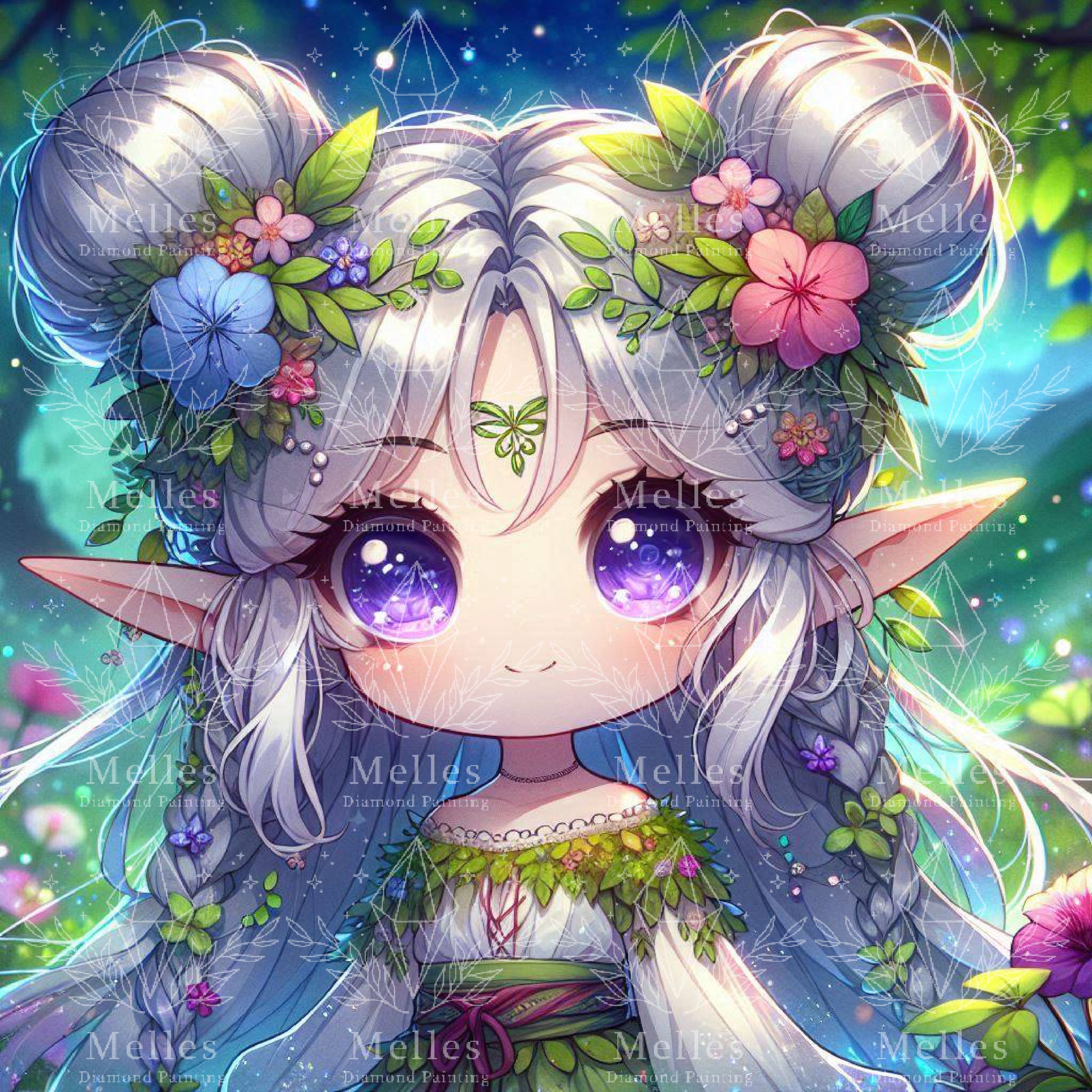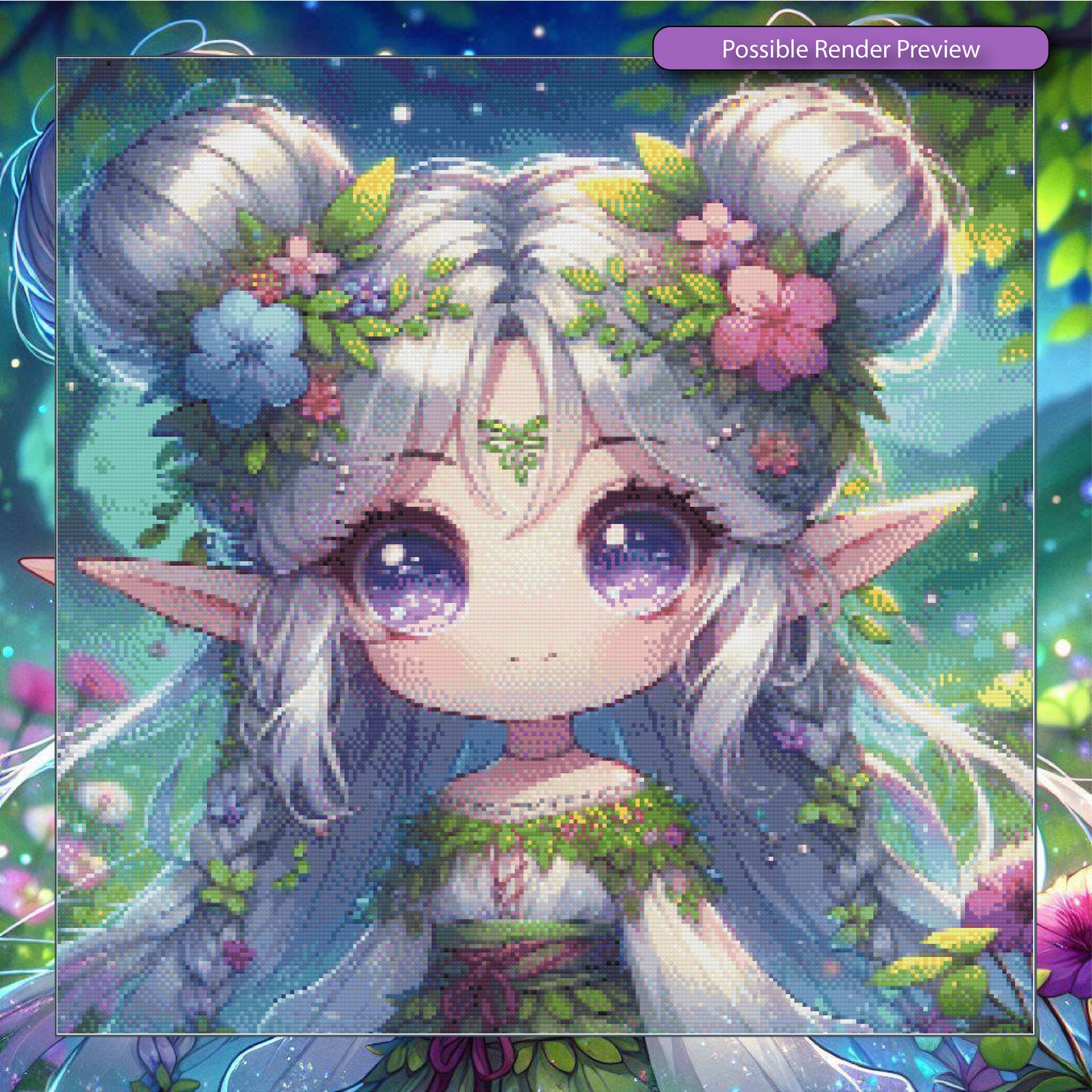 In the twilight glow of an enchanted glade, Sylvelle blossoms with the gentleness of moonlight and the strength of ancient roots. Her hair shimmers like silver dew, and every step she takes awakens flowers with starlit breath.