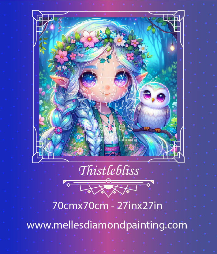 Nestled deep within moonlit groves, Thistlebliss is a gentle keeper of secrets whispered by owls and carried on petals. Her starlit braid glows like woven moonbeams, and her gaze reflects the quiet magic of twilight forests.