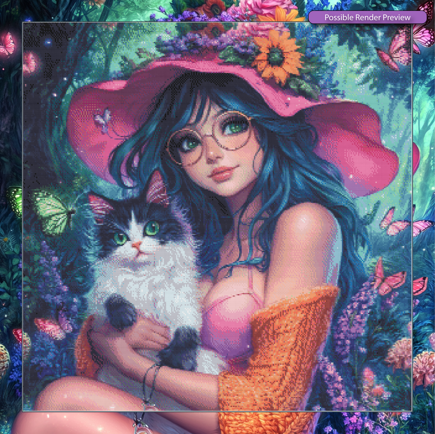 🌼 Whiskers & Wildflowers 🌼 Tucked away in an enchanted grove, she sits wrapped in warmth and sunlight, her smile as bright as her blooming hat. With emerald eyes matching her curious feline companion’s, and butterflies fluttering like daydreams around them, they share a bond as soft as fur and as vibrant as summer flowers. 🌸🐾
