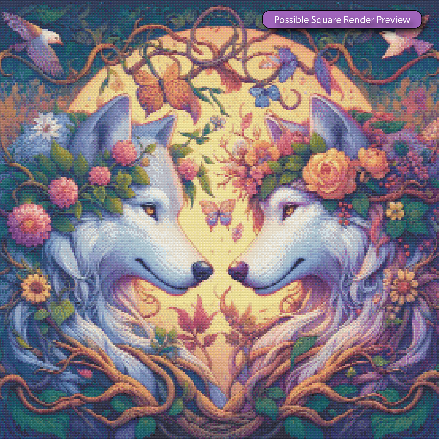 - **🌸 Nature's Guardians**: The wolves, crowned with intricate floral wreaths, represent the guardians of the natural world. Their serene gazes reflect both wisdom and grace, reminding us of the deep connection between animals and the earth.