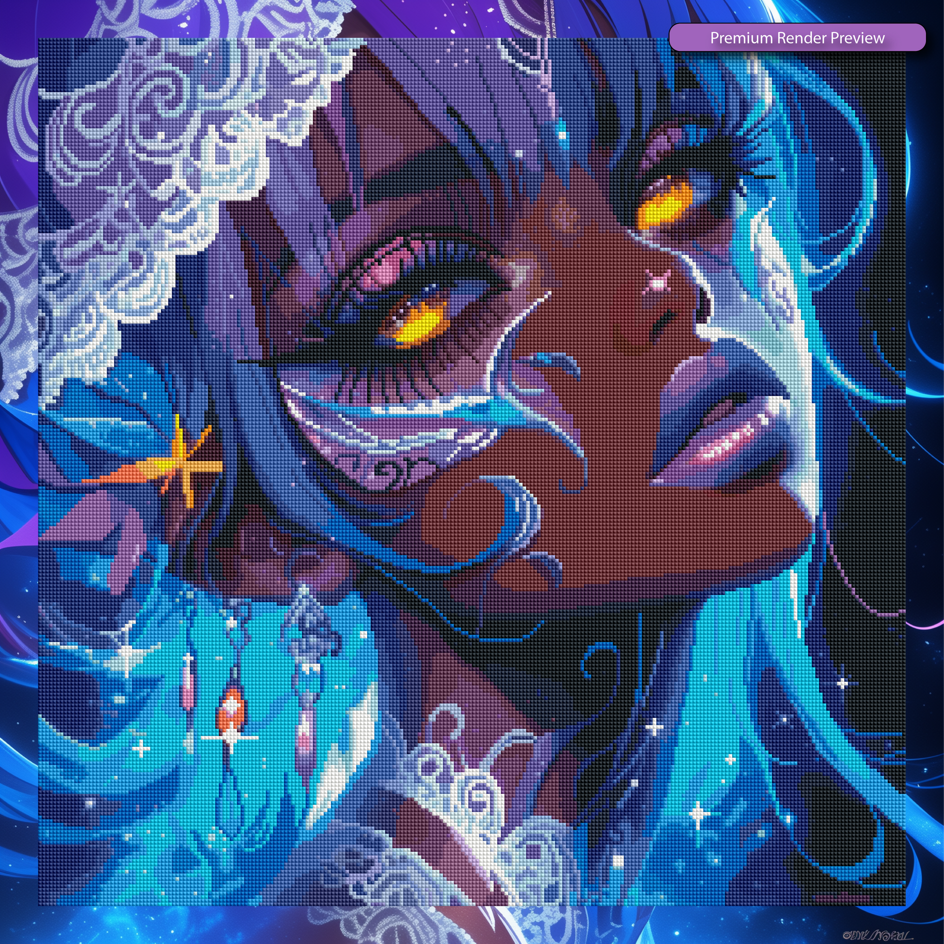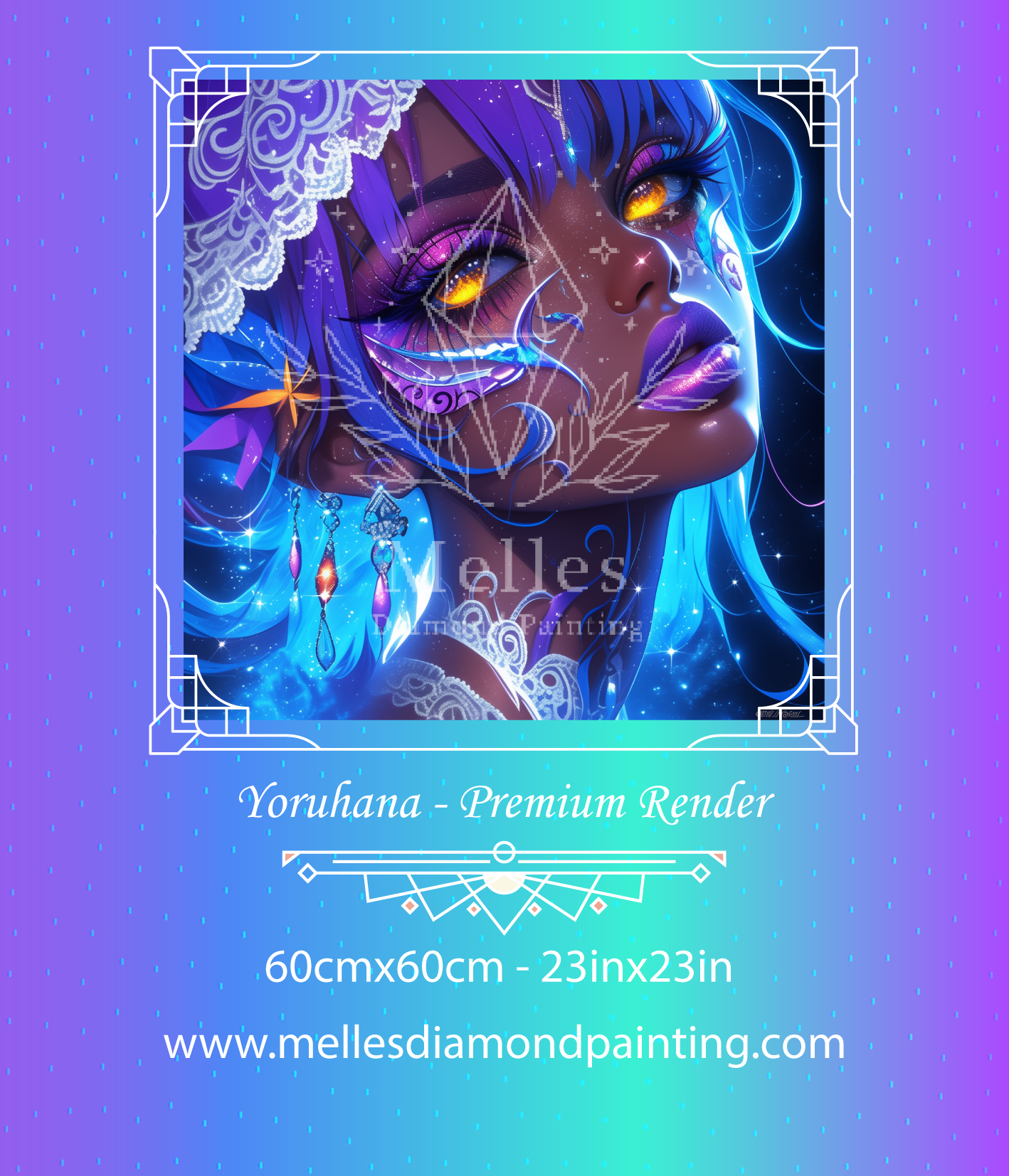 Yoruhana blooms beneath the starlit night, her golden eyes glowing with celestial fire. Draped in sapphire light and cosmic lace, she embodies mystery, grace, and the quiet power of dreams whispered to the stars. 🌙💫💎